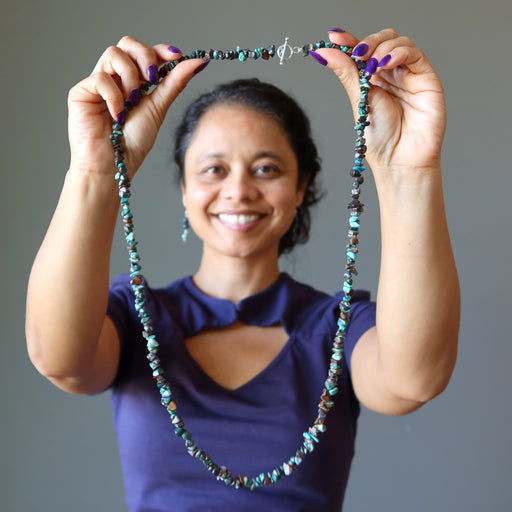 View full detailsThis sterling silver Chrysocolla necklace reminds you to cherish beauty. Planet Earth blesses you with breathtaking scenes of nature. Spirit blesse...