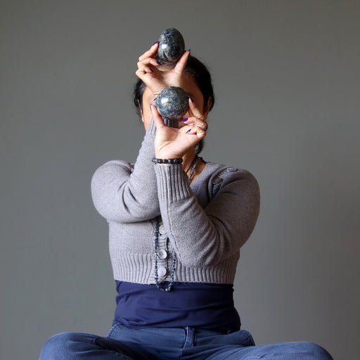 • Iolite Egg Sunstone Crystal Nest of Money
