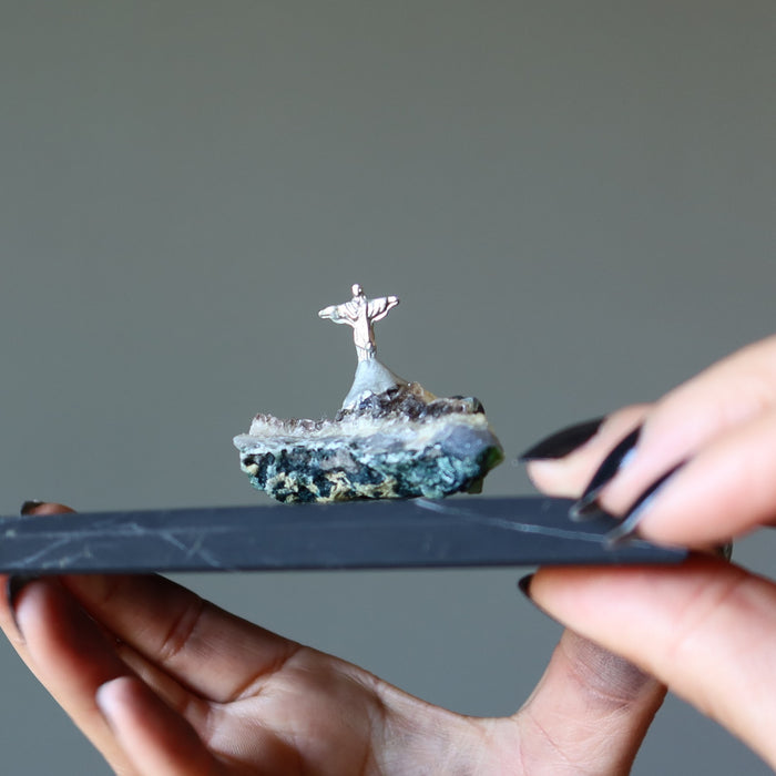 This purple Amethyst cluster features Christ the Redeemer. It makes the perfect piece for your spiritual altar or meditation nook. You are blessed!