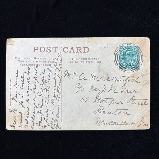 View full detailsSocial History: Written to Mrs. A. MacKintosh in Newcastle-on-Tyne. The sender writes a note about sending a physical gift along with the card: By ...