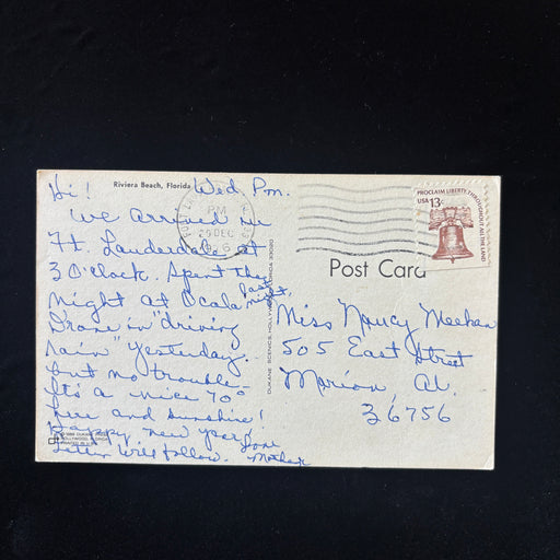 View full detailsSocial History: Mailed from Fort Lauderdale, FL to Marion, AL. Written by a mother to her daughter, the message captures the "Snowbird" experience ...