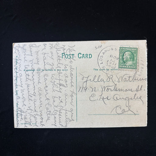 Social History: This card offers a wonderful glimpse into pre-WWI life in the San Fernando Valley. Mailed to Miss Villa R. Watkins in East Los Ange...