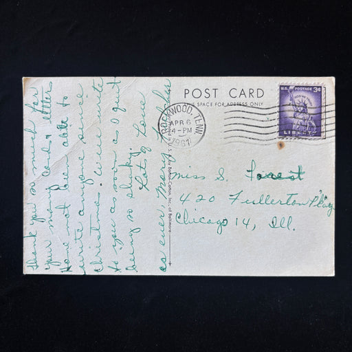 View full detailsSocial History: Mailed by a woman named Mary from Rockwood, Tennessee to Miss S. Forest in Chicago, IL, the heartfelt message apologizes for "shaky...