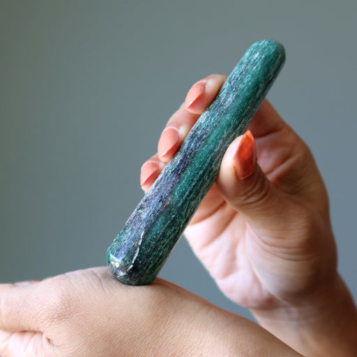 View full detailsFeel your worries melt away as you gaze into this beautiful Ruby Fuchsite massage wand. Your body enters deep relaxation when you do crystal healin...