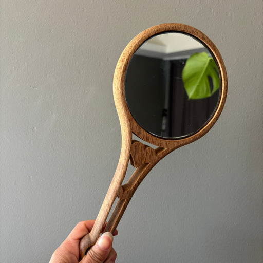 View full detailsAdmire your reflection in this unique handcrafted wooden hand mirror featuring an ornate carved heart-shaped handle. Weighs8.6 ounces Measures11.5...