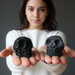 Your new skulls are carved from natural Lava. This is a porous, lightweight, black stone. Each is unique.