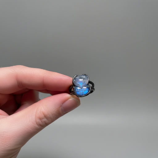 View full detailsEmbrace the ethereal glow of this striking Moonstone ring, where a celestial blue fox gemstone is set on a sleek gunmetal band. You are truly radia...
