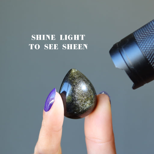 View full detailsTreat yourself to the ultimate luxurious protection stone, this smooth and sparkling Super Sheen Obsidian egg. Naturally glistening with both gold ...