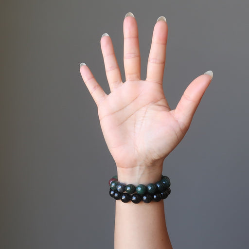 View full detailsGet comfortable with these Earth Element bracelets adorning your arm. Green Bloodstone grounds you to nature's forests and trees. Rainbow Obsidian ...