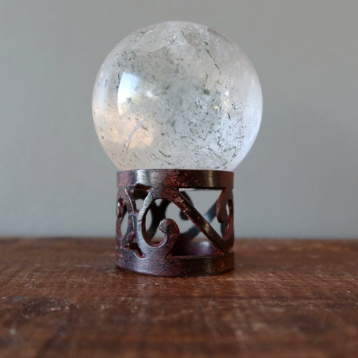View full detailsThis metal display stand features an ornate scroll design that frames your crystal ball with sophisticated elegance. The burl finish adds depth and...