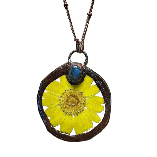 View full detailsA radiant yellow flower meets shimmering Labradorite in this captivating copper chain necklace, designed to elevate your everyday elegance. A weara...