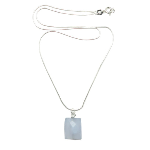 View full detailsGet in on a cut of cool blue Chalcedony! This stunning faceted gemstone necklace has your aura smiling and your style sparkling. The Chalcedony cry...
