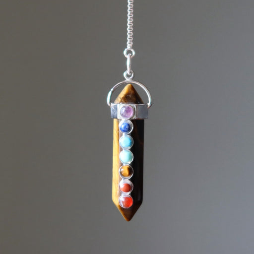View full detailsCan you be two things at once? This Tigers Eye chakra necklace converts into a double-terminated healing pendulum. Spiritual and stylish, modern an...