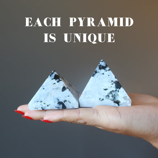 View full detailsTouch the energy of Goddess Luna with this sacred Moonstone Tourmaline pyramid. Moonstone draws out your intuitive abilities while Tourmaline prote...