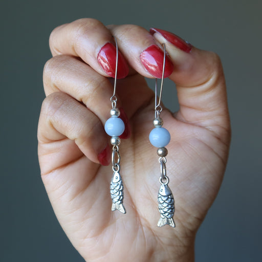 • Angelite Earrings Serene Blue Sea Silver Fish Jewel