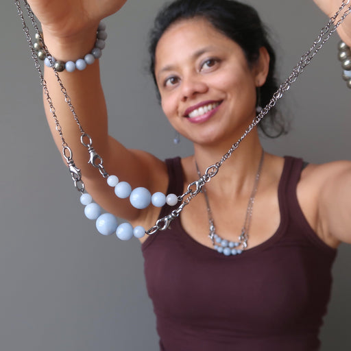 Angels are all around you. This gorgeous blue Angelite necklace attracts your guardian angels of the heavenly realm. Feel peaceful and protected in...