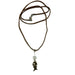 Your new necklace features a clarified Clear Quartz heart bead with a fish bone charm. The pendant hangs from a brown suede cord secured with a lobster claw clasp.