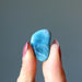 Your new stone features natural and untreated Apatite. This is a light to dark blue stone. Each stone is unique, tumbled smooth but retaining natural dips, crackles, veins, and craters.