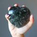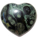 Your new heart features natural and untreated Crocodile Jasper. It contains vivid green and black patterns, often resembling a guardian's eyes. The stone is polished into a puffy heart shape, smooth but retaining organic lines and grooves characteristic of genuine gemstones. Each is unique. Hearts are measured by width.