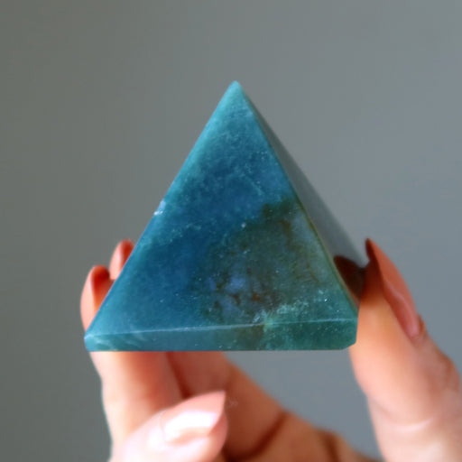 View full detailsYour sacred Moss Agate pyramid is a fantastic showcase of nature's power and beauty. This as-is crystal ignites your life force chi so that you fee...