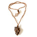 Catch cosmic power with your new Meteorite Macrame Necklace! A genuine brown NWA Chondrite Meteorite hangs securely in its net, energizing you with galactic greatness.