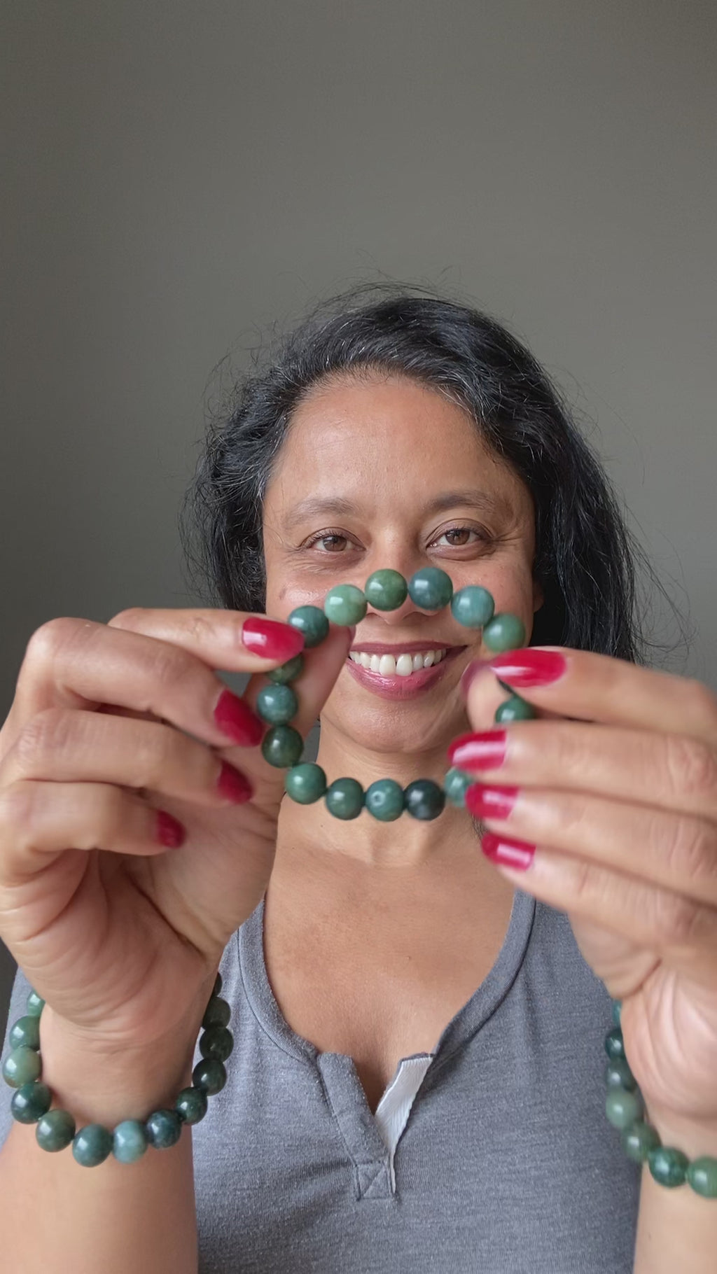 Your bracelet showcases natural and untreated Green Agate on a sturdy elastic stretch cord. These are translucent to opaque light to dark green stones polished into roundish beads. Each stone differs. Beaded in the Satin Crystals studio in the USA.