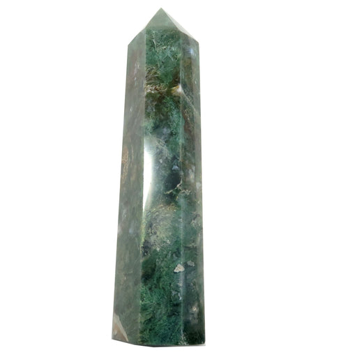 DESCRIPTION MEANING SHIPPING Summon the magical witch of the Green Forest through your Moss Agate tower wand. This powerful healing crystal poi...