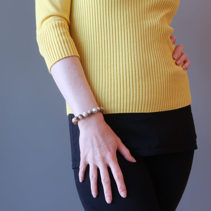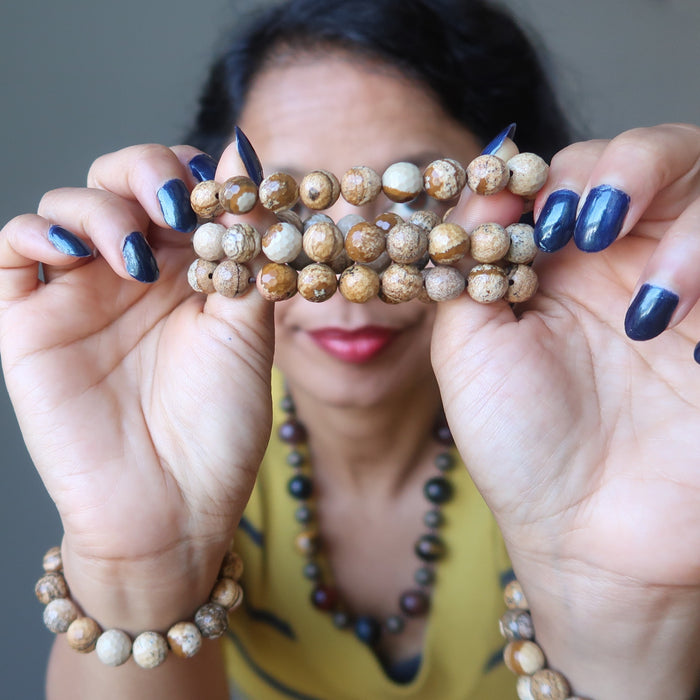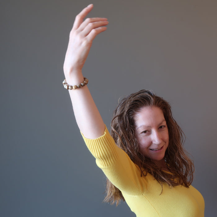 This Landscape Jasper bracelet takes you on an exploratory journey to see the wonders of the world. The faceted stones contain black dendritic inclusions resembling sand dunes, plants, and animal prints. It is the perfect pick for world travelers or local adventurers.