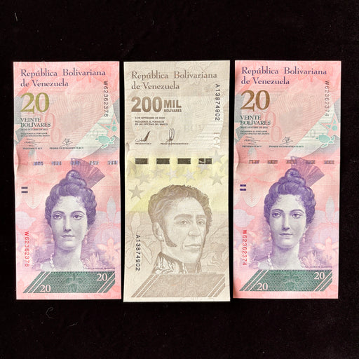 View full detailsExplore the intersection of economic history and natural beauty with this set of three Venezuelan Bolívar notes, featuring the iconic Hawksbill Sea...