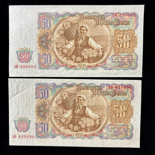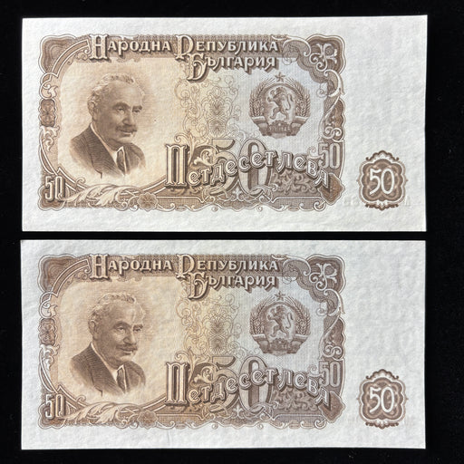 View full detailsOwn a museum-quality pair of the highest denomination from Bulgaria's early Cold War era. Intricate intaglio engraving featuring Georgi Dimitrov (f...
