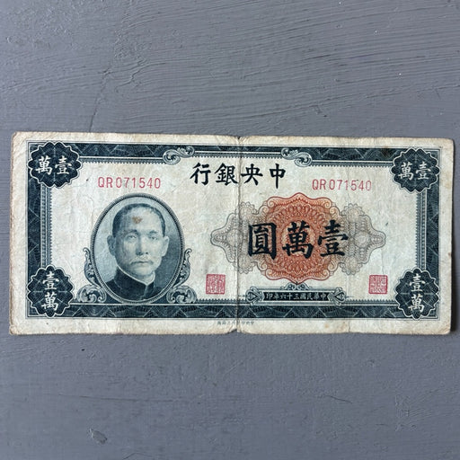 View full detailsThis banknote is a 10,000 Yuan note issued by the Central Bank of China in 1947. It features a portrait of Dr. Sun Yat-sen, the founding father of ...