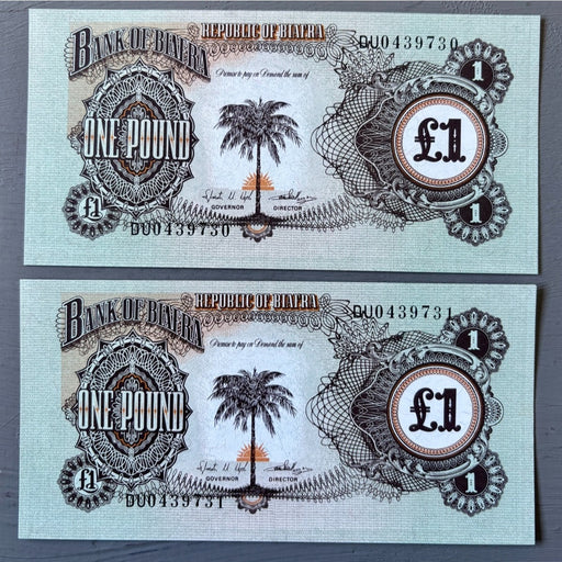 Secure a remarkable piece of 20th-century "Dead Country" history. This listing features a pristine, consecutive pair of 1-pound notes from the Repu...