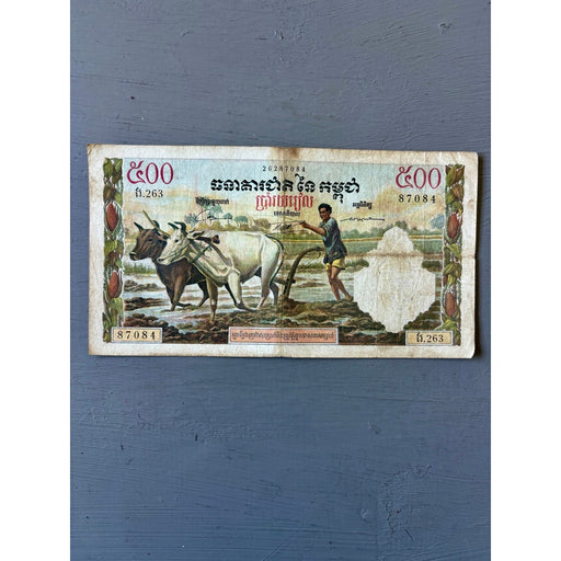 View full detailsThis is an original mid-century Cambodian banknote featuring beautiful cultural imagery.Serial Number: 87084Security: The watermark on your 500 Rie...