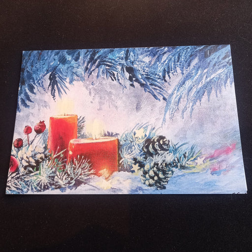 View full detailsThis greeting card glows with the warm energy of winter. The print is a reproduction of "Candles" painted by French artist Elodie Cazes using her m...