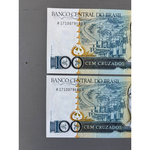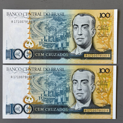 View full detailsThis listing is for a pristine, consecutive pair of 100 Cruzados notes featuring the 21st President of Brazil, Juscelino Kubitschek. These notes ar...