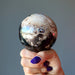Your sphere is polished from natural and untreated Opal from Madagascar. Yours boasts a color palette that may encompass various shades of brown, beige, and black, polished round, but retains natural pits, grooves, and inclusions. Each stone is unique. Showcase your crystal ball by adding a display stand.