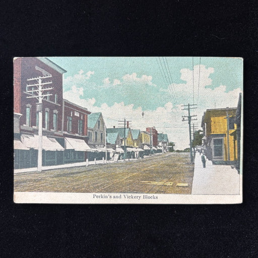 Social History: This card highlights the Perkin's and Vickery Blocks, the architectural heart of downtown Pittsfield in the early 20th century. Th...