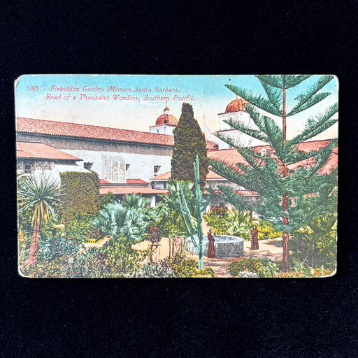• Antique Postcard 1915 Forbidden Garden Mission Santa Barbara California Friars Mitchell