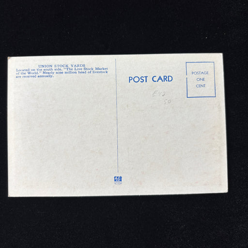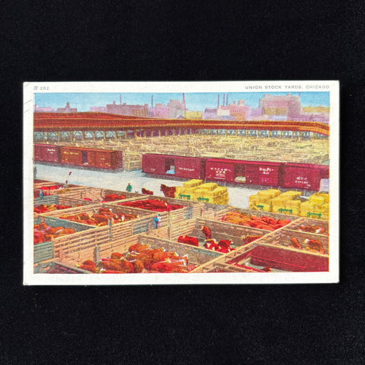Historical Significance: This vintage white border postcard features a rare aerial view of the Union Stock Yards in Chicago, Illinois. At the time ...