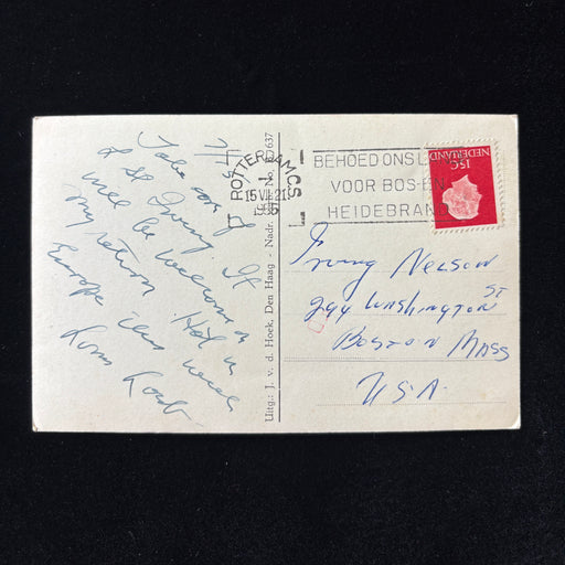 Social History: The handwritten message provides a charming personal connection to cross-Atlantic postal history. Mailed to Mr. Irving Nelson at 9...