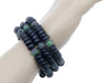Your new bracelet features authentic Ruby Zoisite. These are green Zoisite gemstones with black Hornblende and the occasional red Ruby inclusion. The stones are polished into round beads and are beaded with black wood on 3 coils of memory wire.