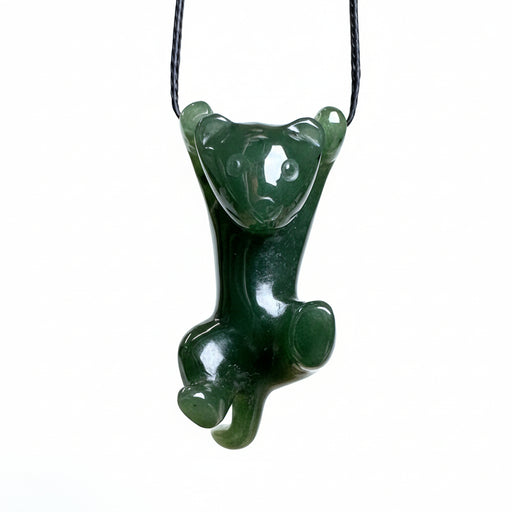 • Jade Pendant Hanging Cat Lucky Lives Green Nephrite Gem
