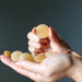 Your 18 new stones are polished from natural and untreated Aventurine. The puffy coins vary in shades of yellow, orange, and red. Each stone is unique. You will receive the exact stones as pictured.