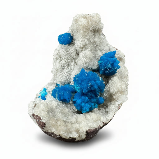 View full detailsThis natural masterpiece showcases brilliant blue Cavansite crystals gracefully nestled in white Stilbite. With its striking color contrast and ref...