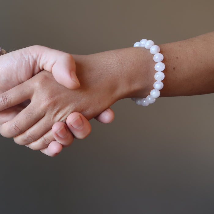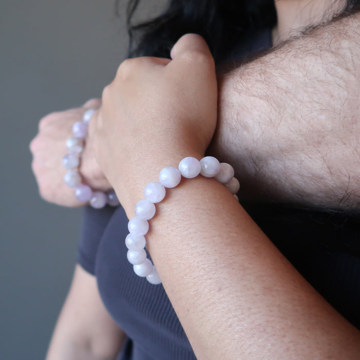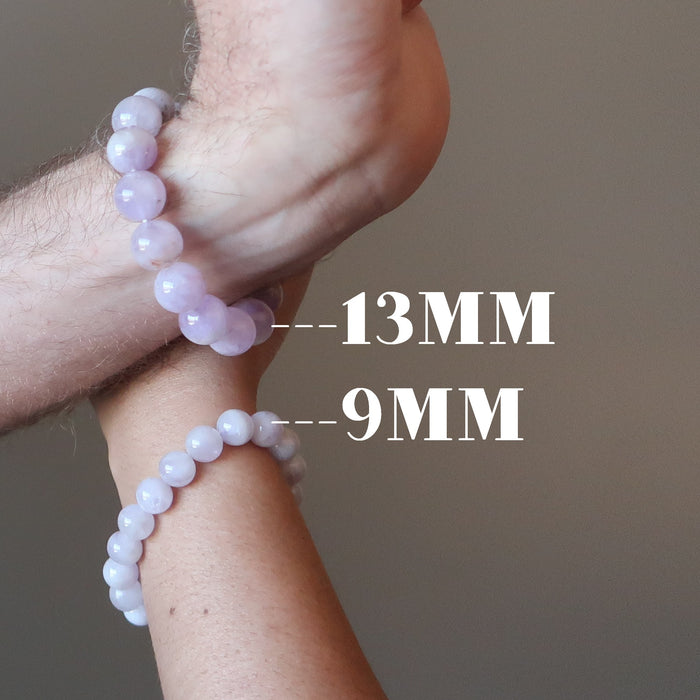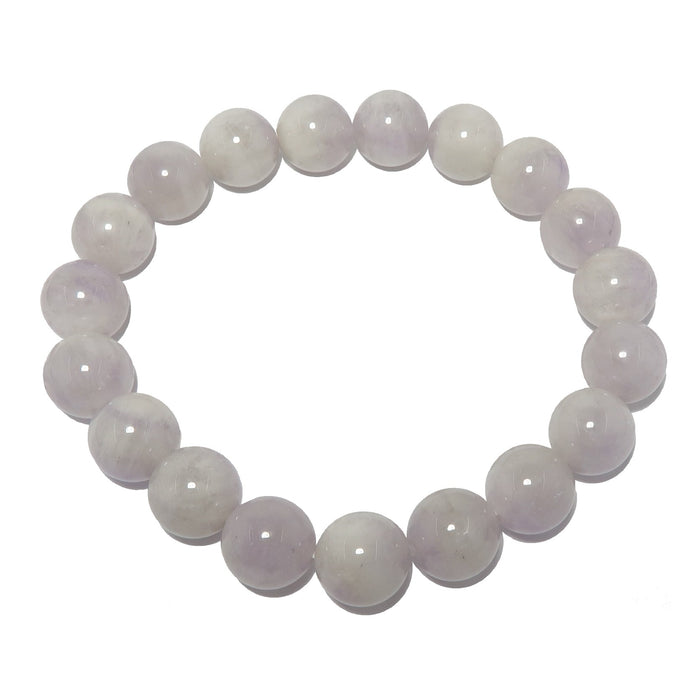 Your bracelet showcases natural and untreated Lavender Amethyst gems on a sturdy elastic stretch cord. These are pale purple stones with inclusions polished into roundish beads. Each stone differs. Beaded in the Satin Crystals studio in the USA.