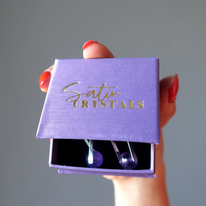 Tune in to the spiritual frequencies wearing your new Amethyst earrings. Rich purple gemstones have you vibrating with a balanced energy. These unique jewels can be dressed up for a fancy night out or dressed down for a casual time with friends.