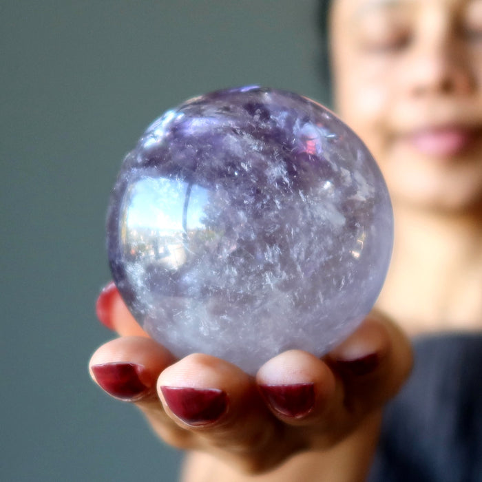 This crystal ball is fit for calling upon your highest archangels. When you gaze into this dazzling orb, it endows you with messages and wisdom from above. This is the perfect Amethyst sphere for your meditation journeys, Reiki experiences, psychic readings, and personal healing.