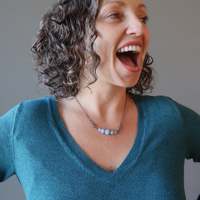 Angelite Necklace Cloud of Serenity Blue Gem Gunmetal