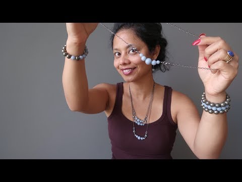 Your new necklace features natural and untreated Angelite. The Angelite is a baby blue stone showing the occasional white matrix and red inclusions. The gemstones are polished into roundish stones and hang from a gunmetal necklace secured with two front-facing lobster claw clasps. Each stone is unique. Beaded in the Satin Crystals studio in the USA.
