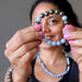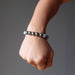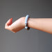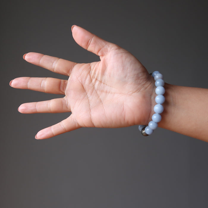 Your bracelet showcases natural and untreated Angelite and Pyrite gems on a sturdy elastic stretch cord. Angelite is a baby blue stone with white inclusions, and the Pyrite is a metallic stone with a subtle gold tone and black veins. Each stone differs. Beaded in the Satin Crystals studio in the USA.